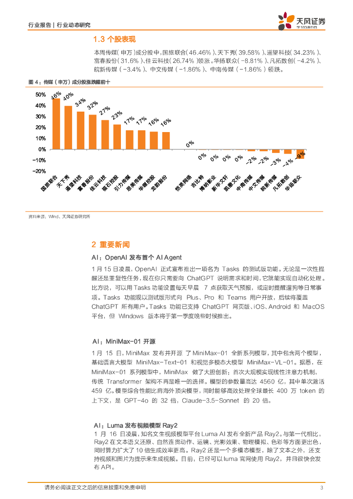 天风证券:传媒行业周报第2周:OpenAI发布首个AIAgent,建议持续关注海内外AI进展;春节档刷新中国影史春节档预售最快破亿纪录.pdf