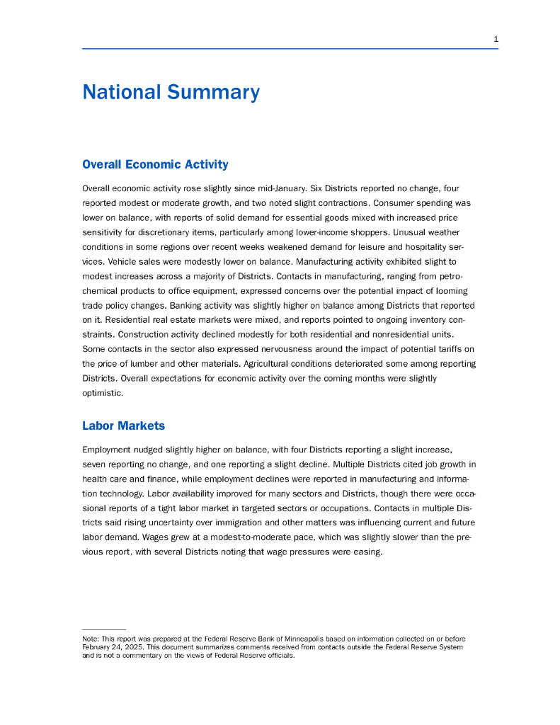 美联储:2025年联邦储备区对当前经济状况的评论褐皮书(英文版).pdf