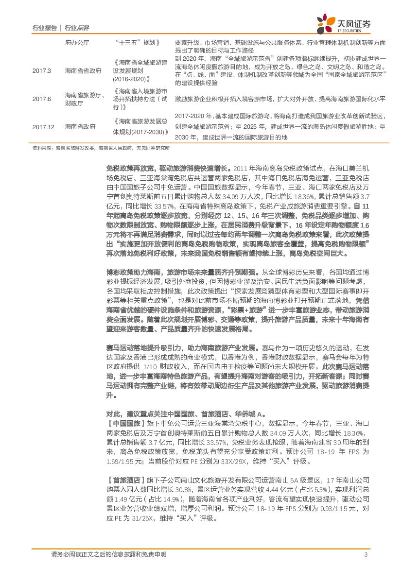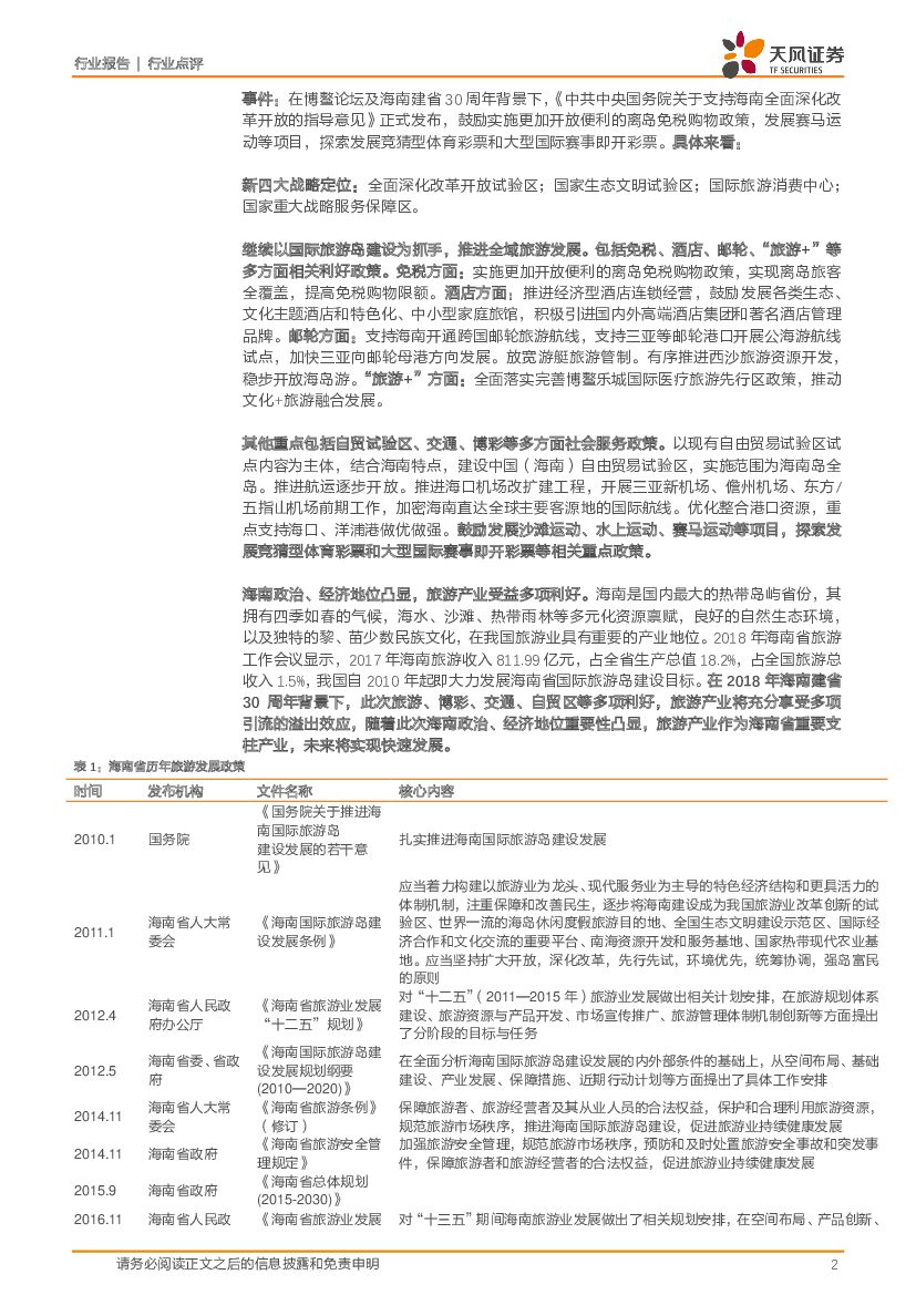 天风证券:旅游综合行业点评:海南旅游新政:免税、酒店、自贸区等多项利好,旅游产业迎量质齐升.pdf