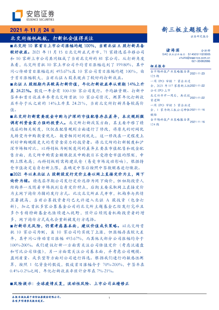安信证券:新三板主题报告:北交所扬帆起航,打新机会值得关注.pdf