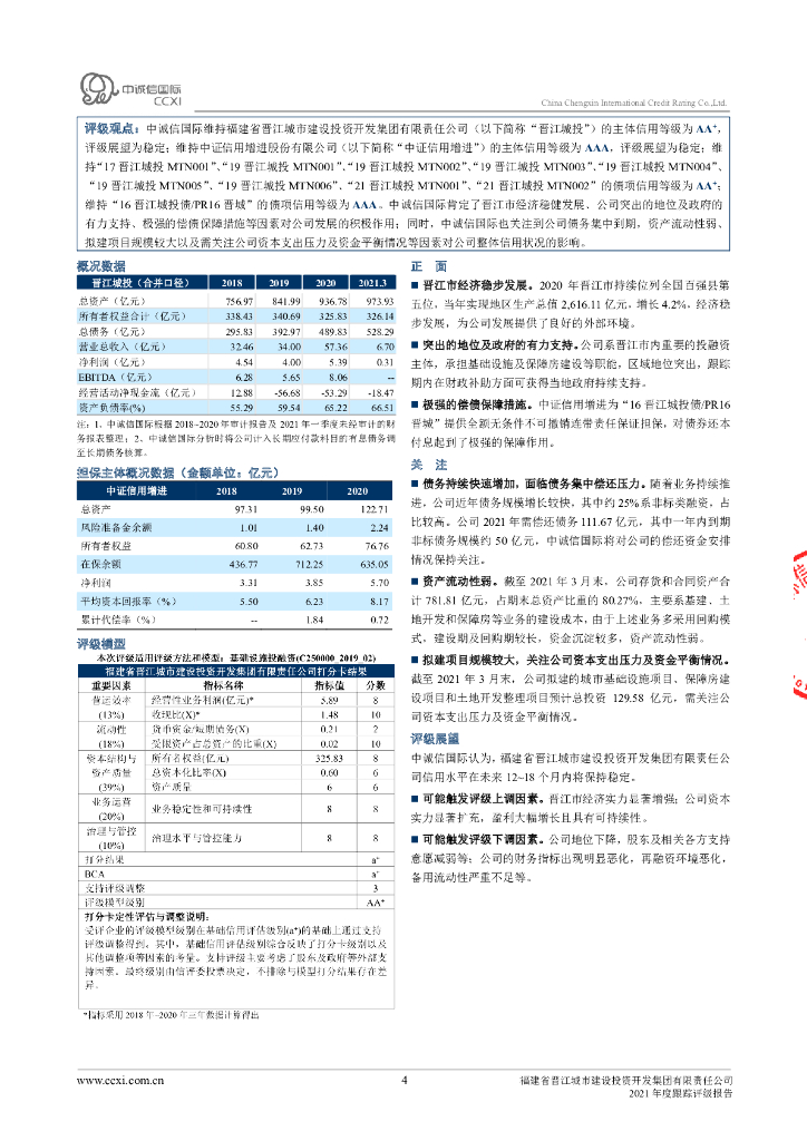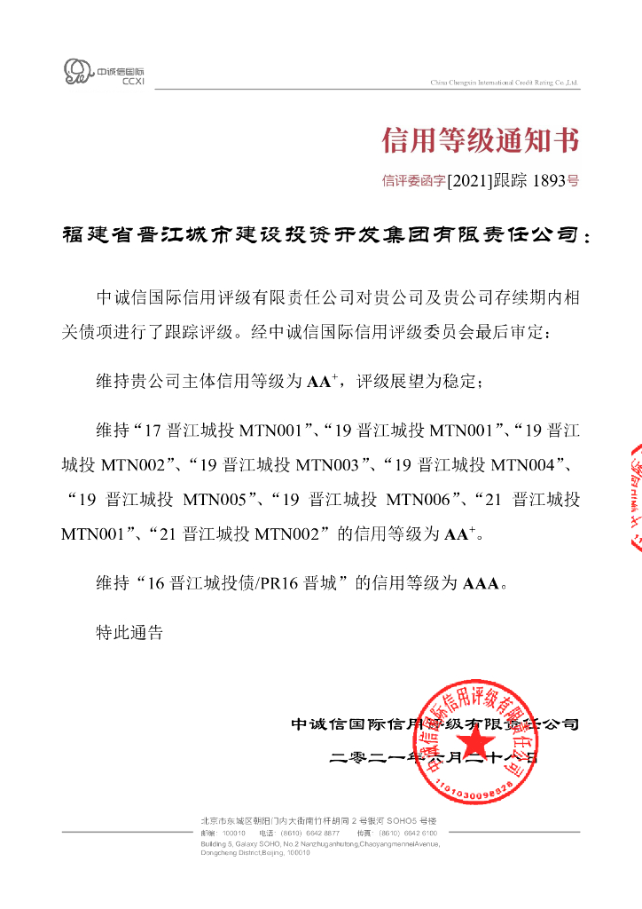 中诚信:福建省晋江城市建设投资开发集团有限责任公司2021年度跟踪评级报告.pdf