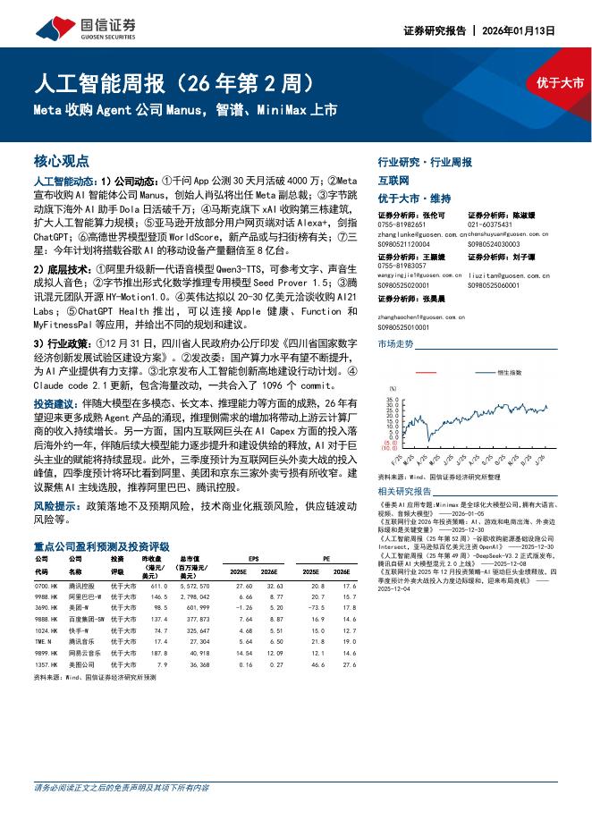 国信证券:人工智能行业周报(26年第2周):Meta收购Agent公司Manus,智谱、MiniMax上市.pdf
