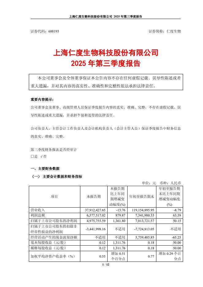 688193-仁度生物:2025年第三季度报告.pdf