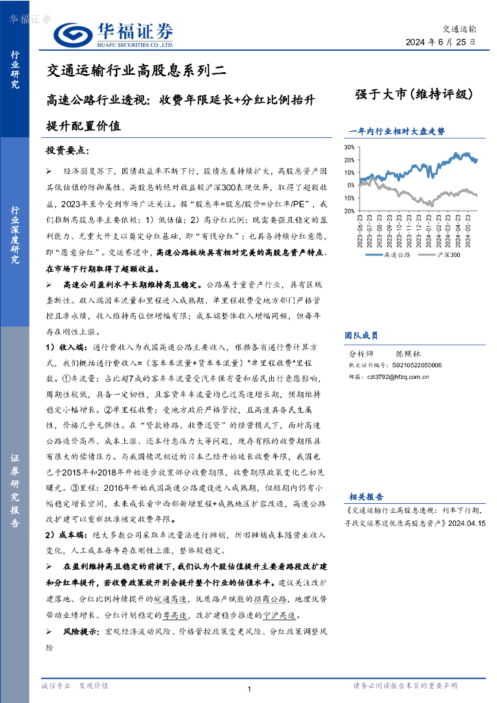 华福证券:交通运输行业高股息系列二:高速公路行业透视:收费年限延长+分红比例抬升提升配置价值.pdf