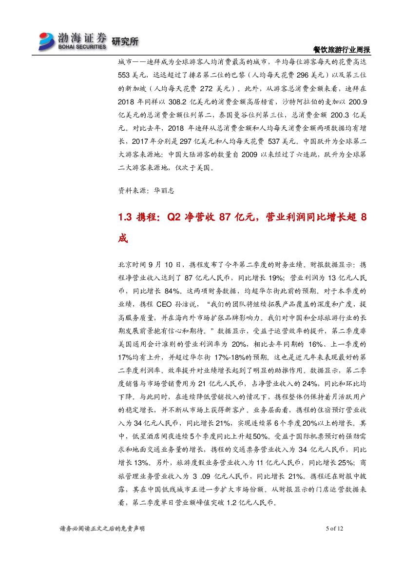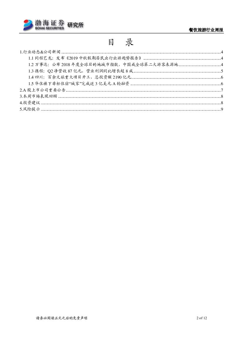 渤海证券:餐饮旅游行业周报:携程Q2营收87亿元 同程发布中秋出游报告.pdf