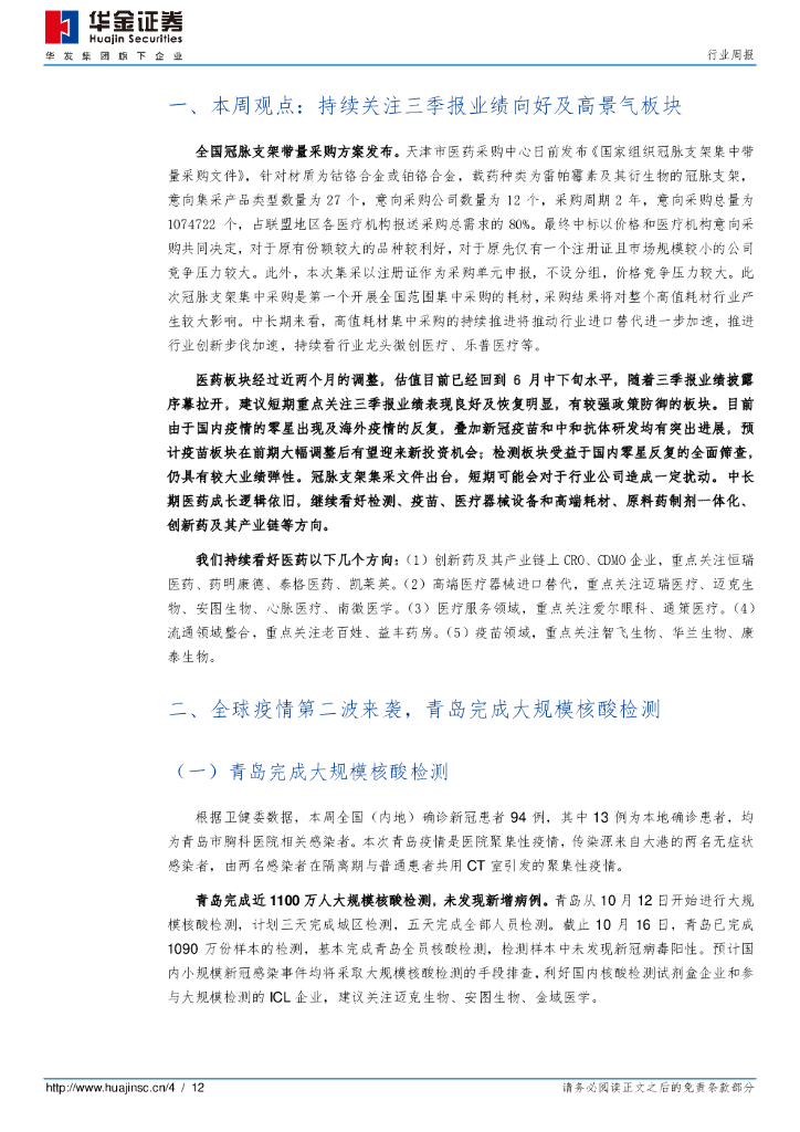 华金证券:医药行业周报:持续关注三季报业绩向好及高景气板块.pdf