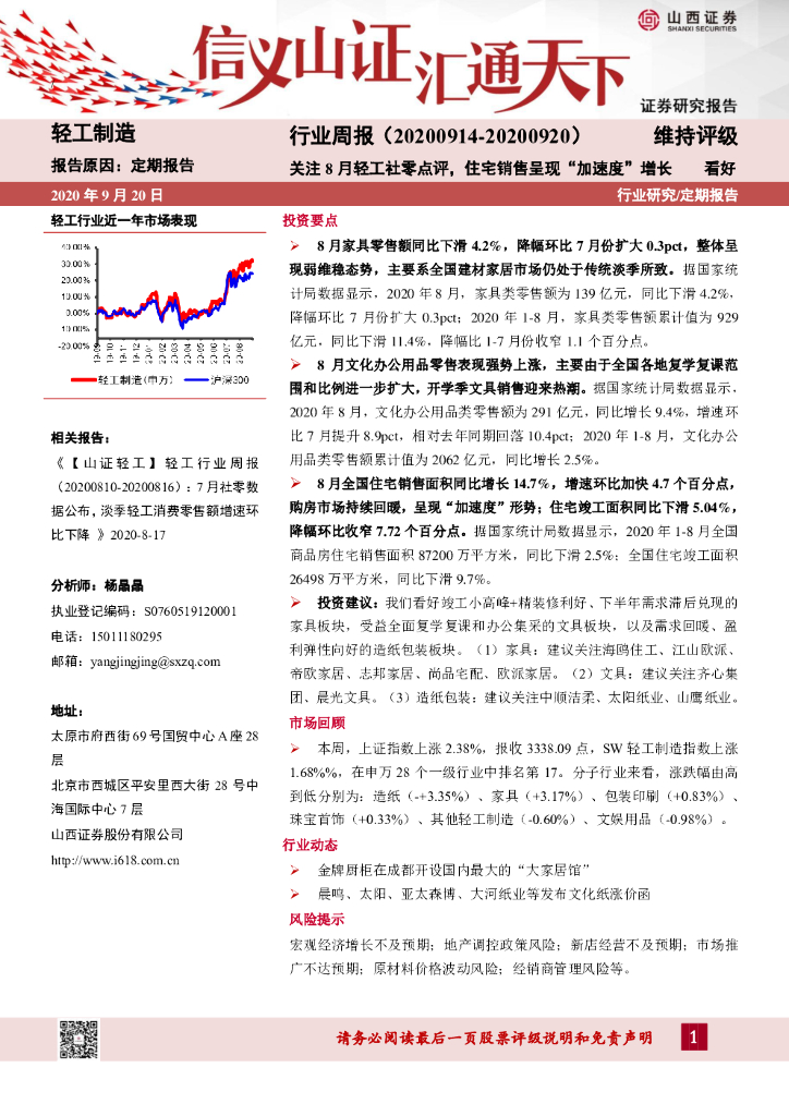 山西证券:轻工制造行业周报:关注8月轻工社零点评,住宅销售呈现“加速度”增长.pdf