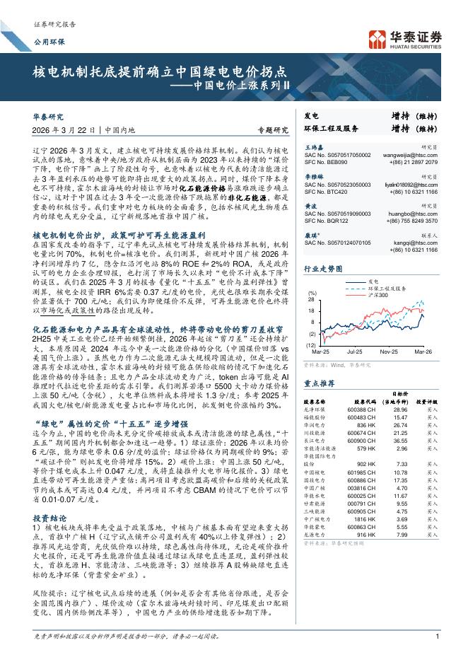 华泰证券:中国电价上涨系列II:核电机制托底提前确立中国绿电电价拐点.pdf