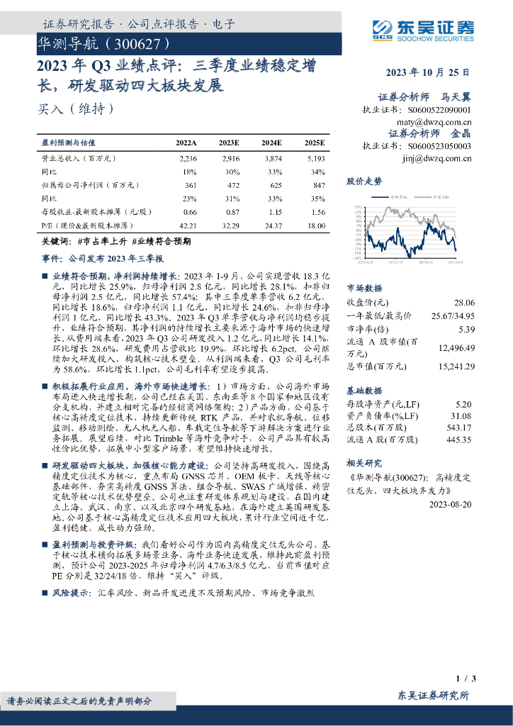 东吴证券:华测导航(300627)-2023年Q3业绩点评:三季度业绩稳定增长,研发驱动四大板块发展.pdf