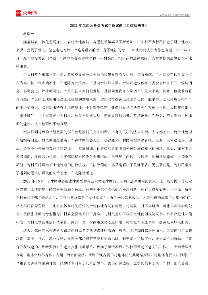 2021年江西公务员考试申论试题(行政执法卷).pdf