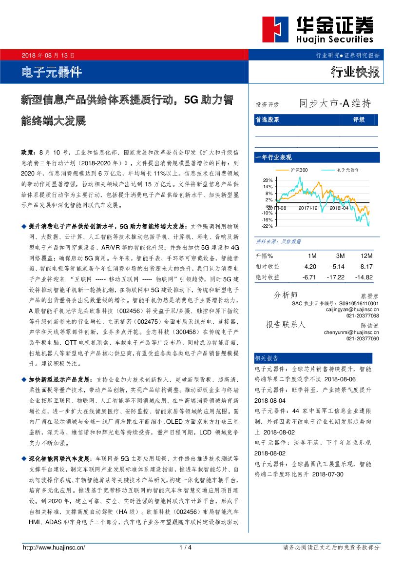 华金证券:电子元器件行业快报:新型信息产品供给体系提质行动,5G助力智能终端大发展.pdf