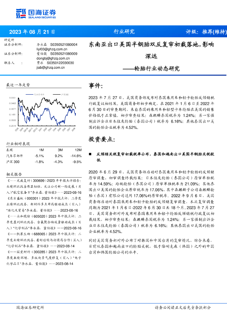国海证券:轮胎行业动态研究:东南亚出口美国半钢胎双反复审初裁落地,影响深远.pdf