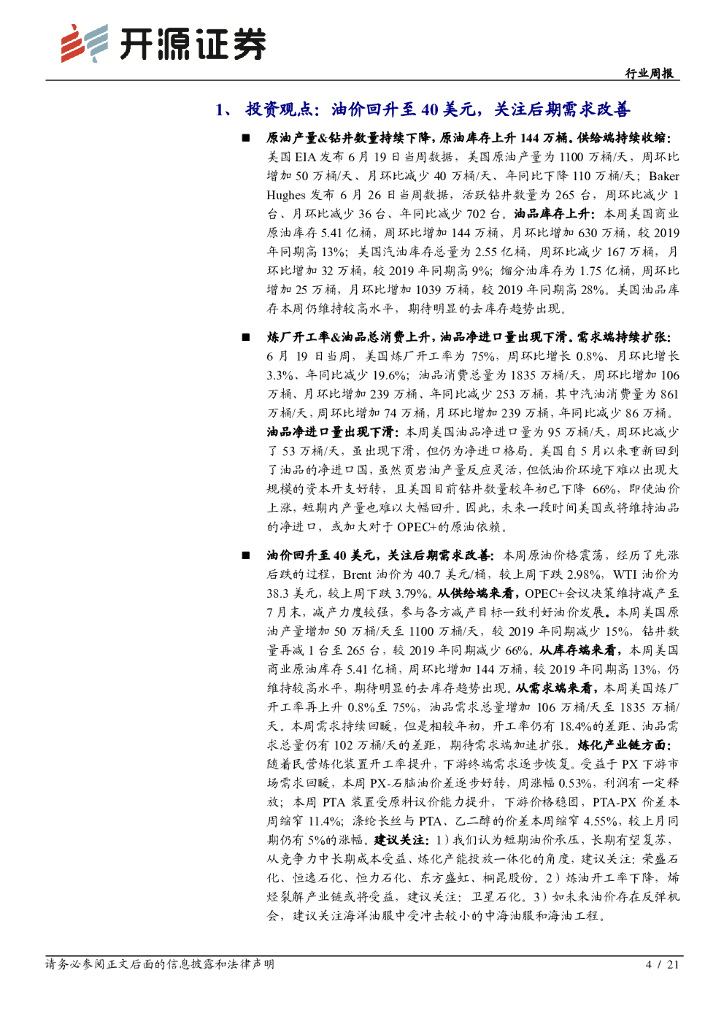 开源证券:石油化工行业周报:油价回升至40美元,关注后期需求改善.pdf