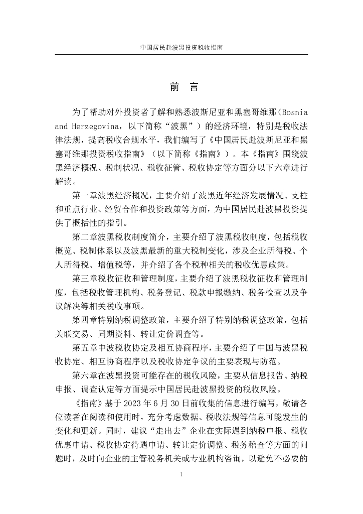 国家税务总局:中国居民赴波黑投资税收指南(2023).pdf
