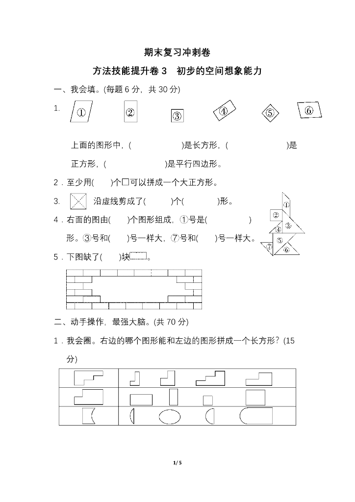 人教一(下)期末冲刺卷3 初步的空间想象能力.pdf