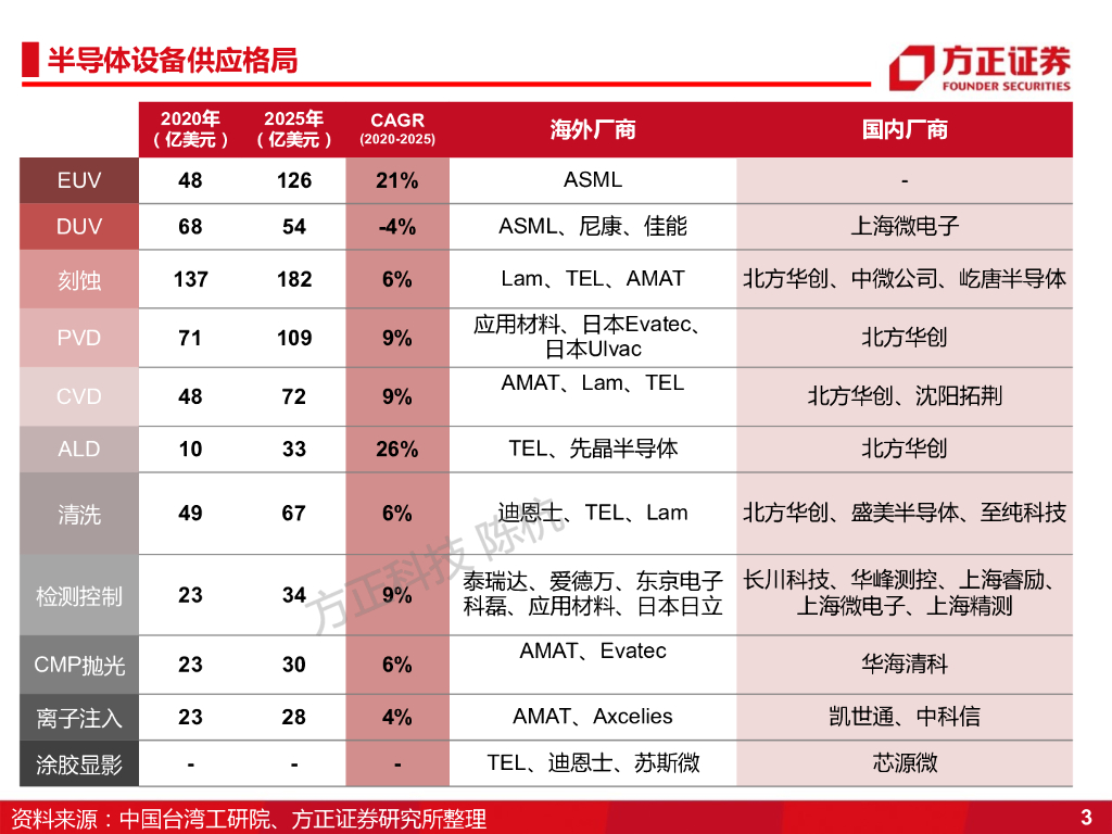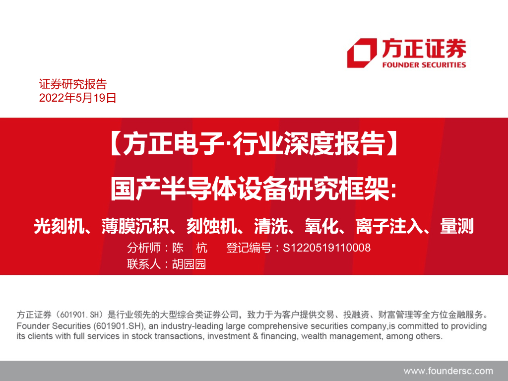 方正证券:国产半导体设备研究框架,光刻机、薄膜沉积、刻蚀机、清洗、氧化、离子注入、量测.pdf