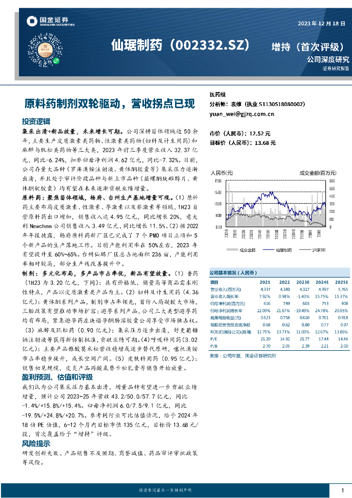 国金证券:仙琚制药(002332)-原料药制剂双轮驱动,营收拐点已现.pdf