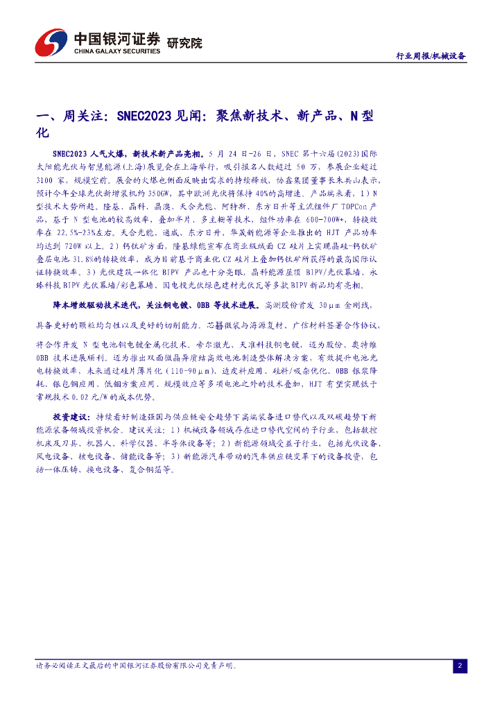 中国银河:机械设备行业周报:SNEC2023见闻:聚焦新技术、新产品、N型化.pdf
