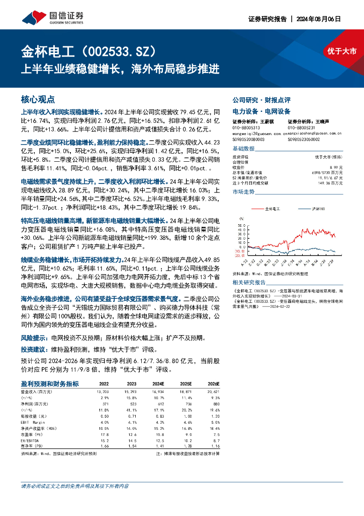 国信证券:金杯电工(002533)-上半年业绩稳健增长,海外布局稳步推进.pdf