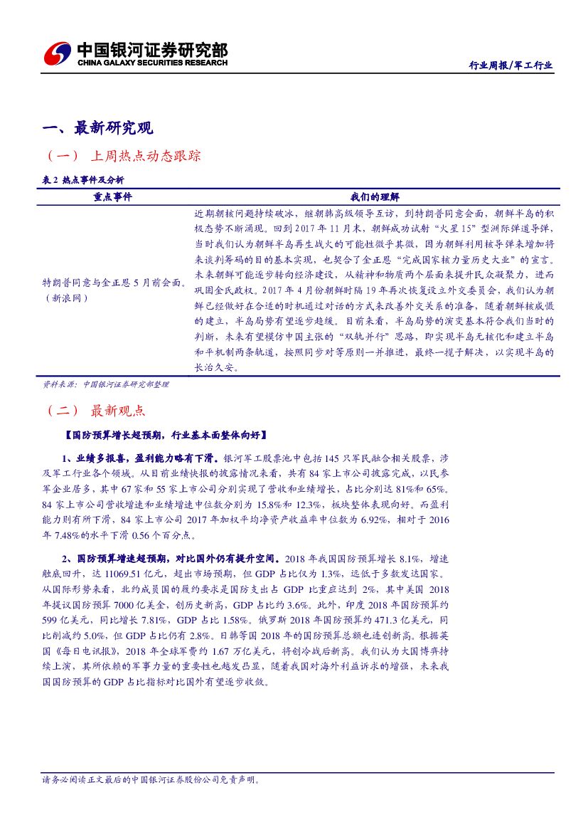 中国银河:军工行业周报:国防预算增长超预期 行业基本面整体向好.pdf