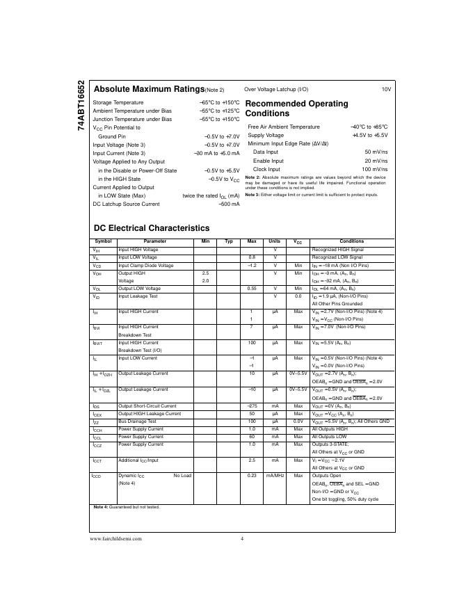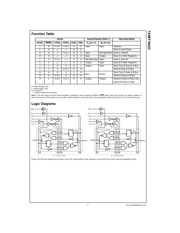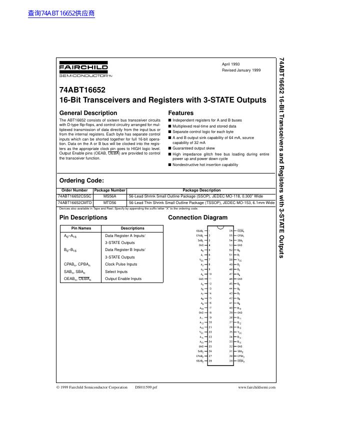 FAIRCHILD 74ABT16652 16-Bit Transceivers and Registers with 3-STATE Outputs 数据手册.pdf