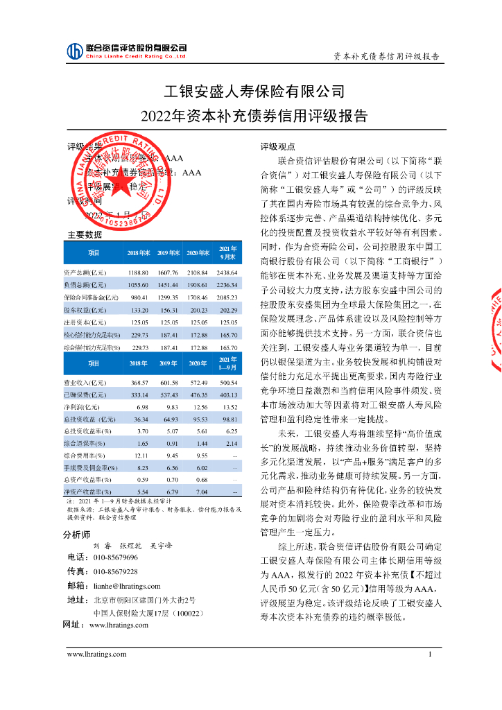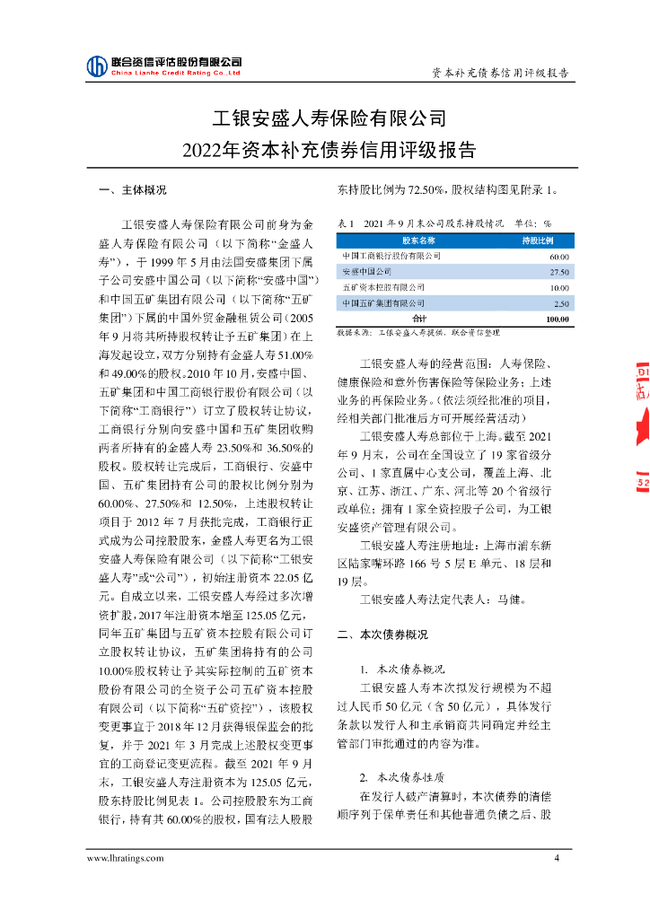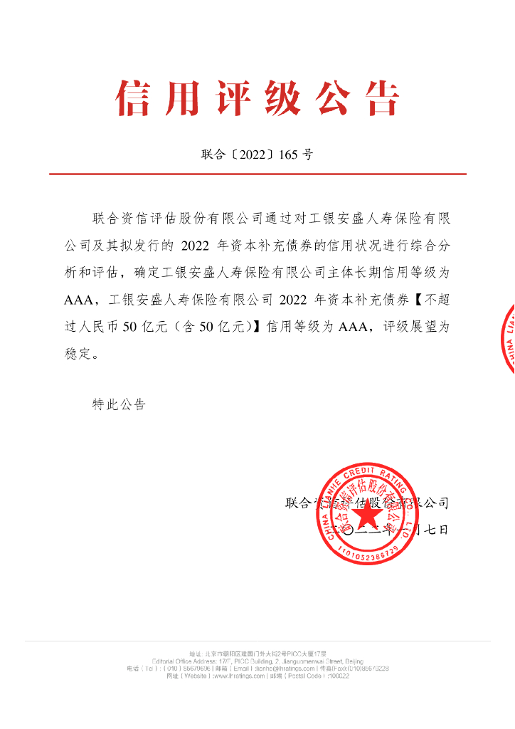 联合资信:工银安盛人寿保险有限公司2022年资本补充债券评级报告及跟踪评级安排-联合资信.pdf