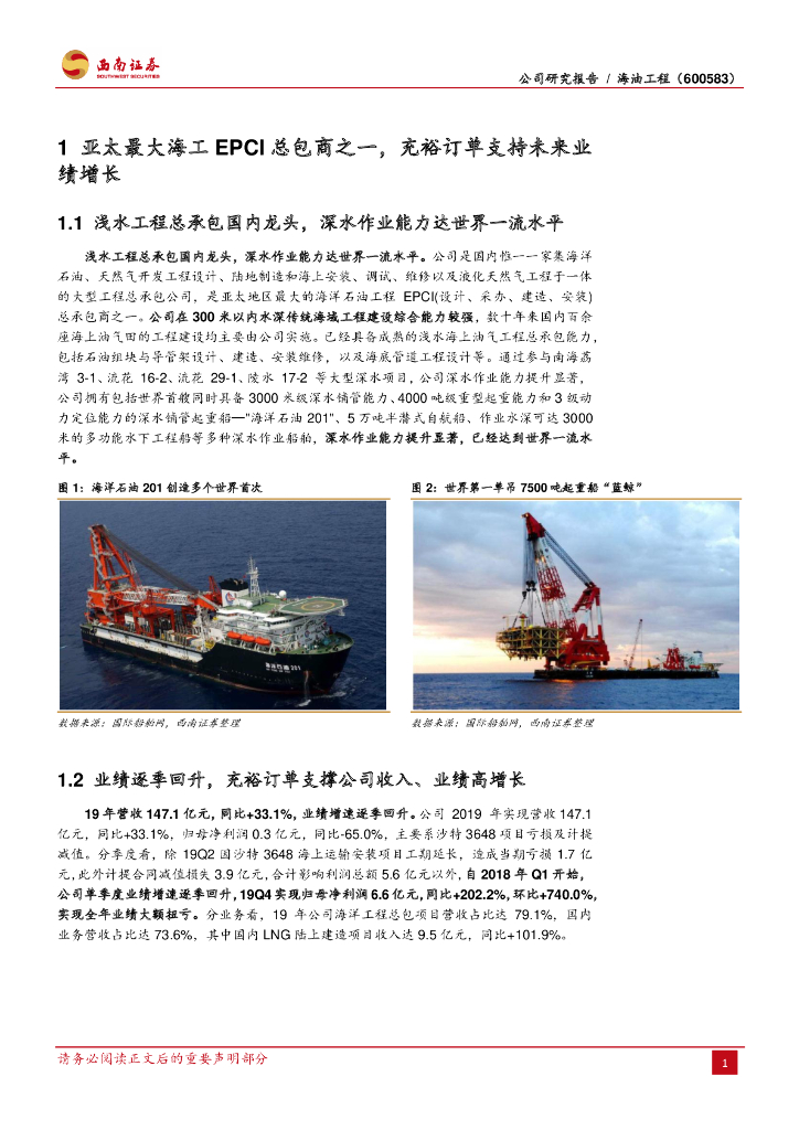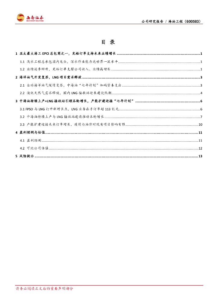 西南证券:海油工程(600583)-海工总包龙头,充裕订单保障业绩高增长.pdf