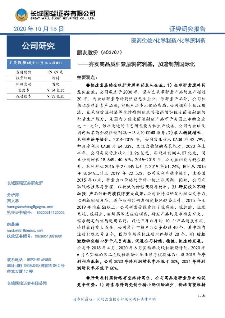 长城国瑞证券:健友股份(603707)-夯实高品质肝素原料药利基,加速制剂国际化.pdf