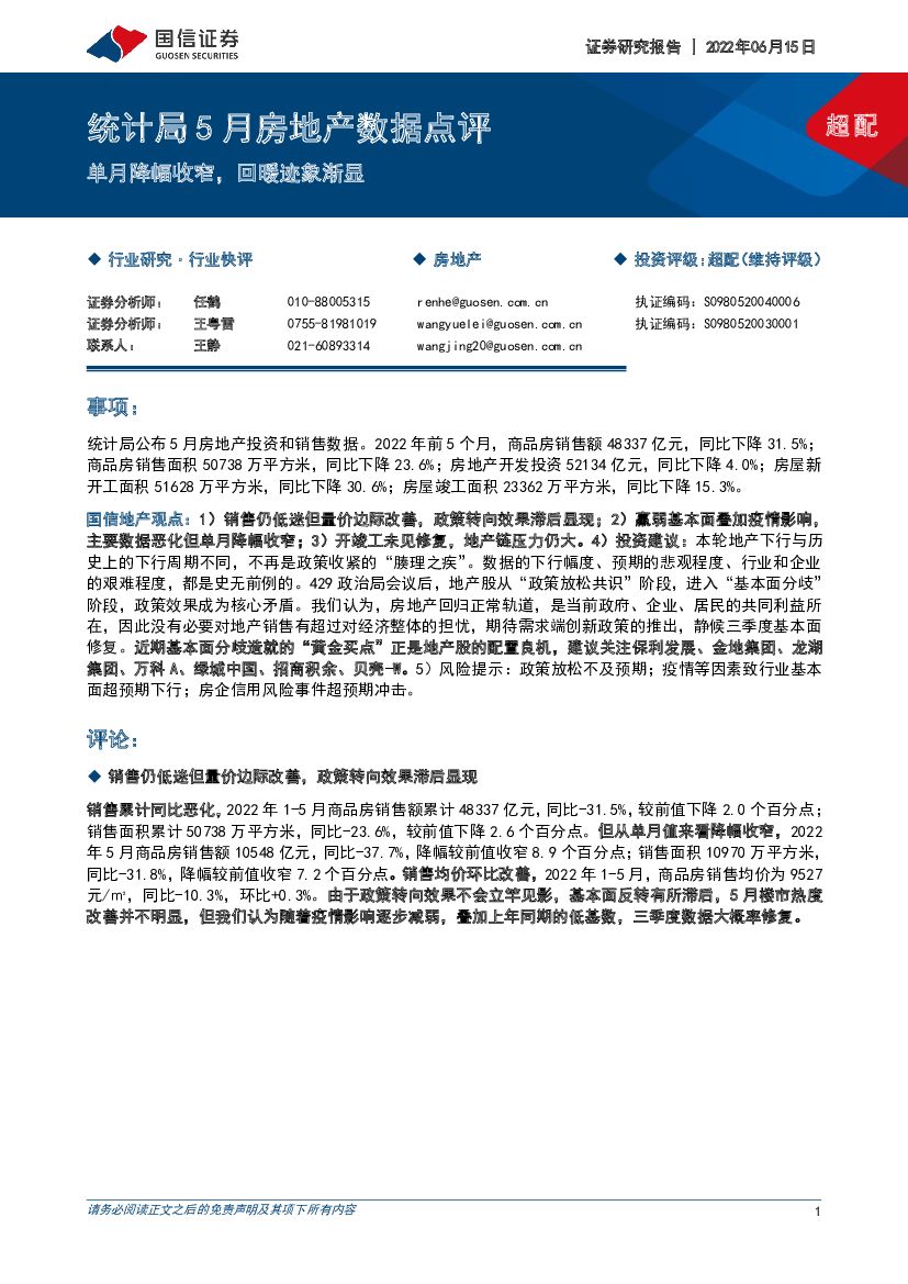 国信证券:统计局5月房地产数据点评:单月降幅收窄,回暖迹象渐显.pdf