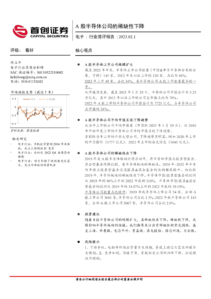 首创证券:电子行业简评报告:A股半导体公司的稀缺性下降.pdf