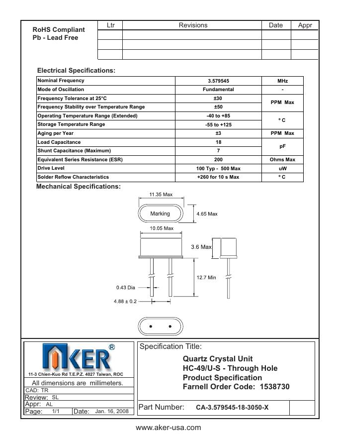 AKER HC-49/U-S - Through Hole Quartz Crystal Unit 数据手册(2).pdf