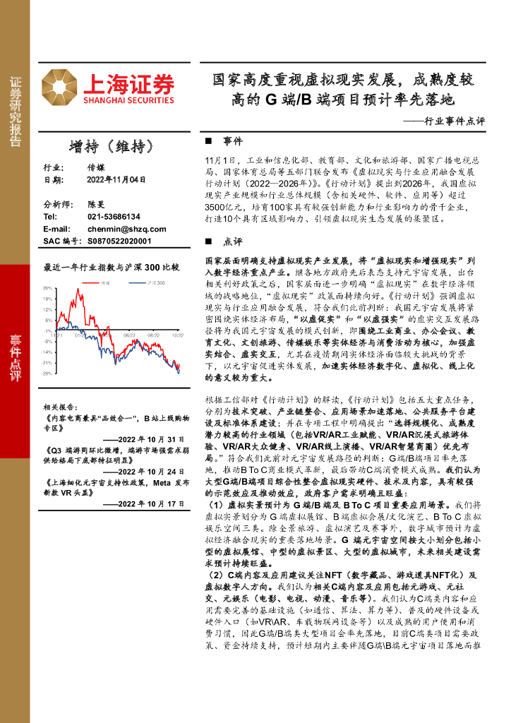 上海证券:传媒行业事件点评:国家高度重视虚拟现实发展,成熟度较高的G端/B端项目预计率先落地.pdf