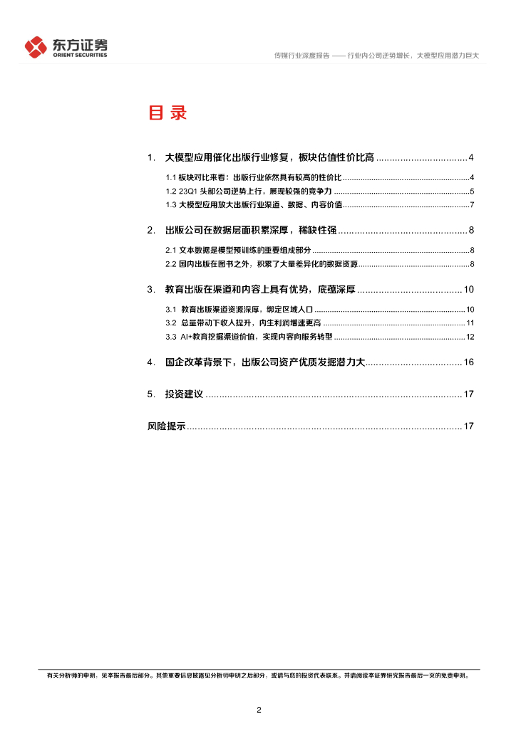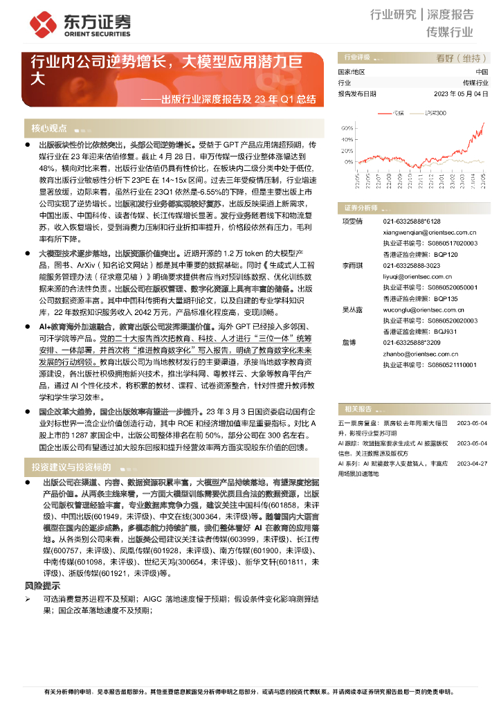 东方证券:出版行业深度报告及23年Q1总结:行业内公司逆势增长,大模型应用潜力巨大.pdf