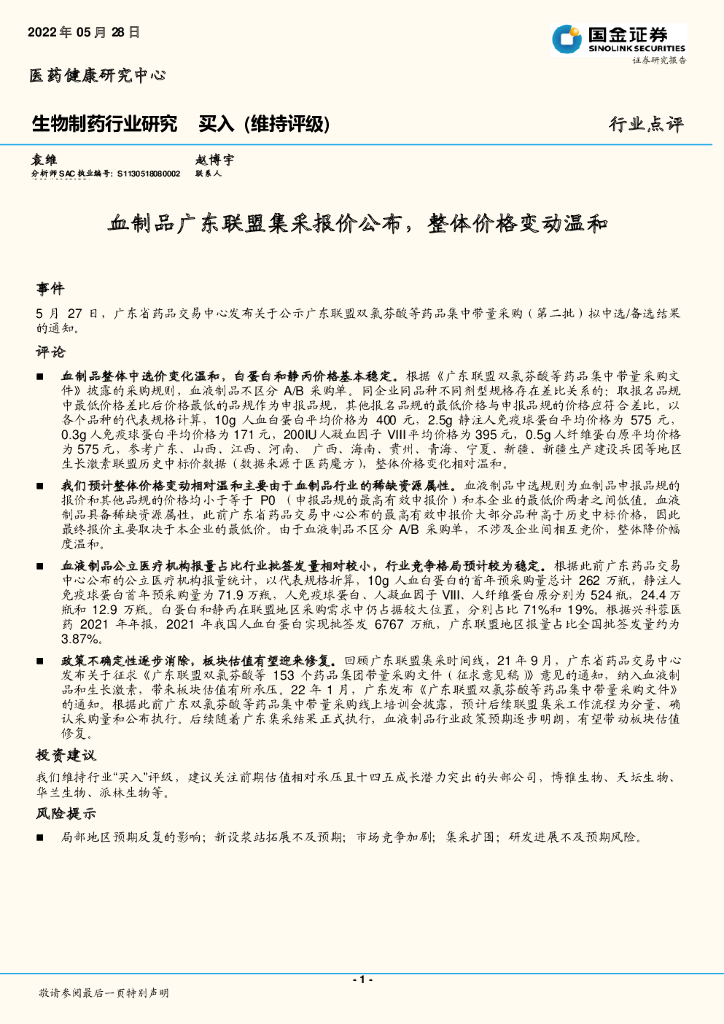 国金证券:生物制药行业研究:血制品广东联盟集采报价公布,整体价格变动温和.pdf