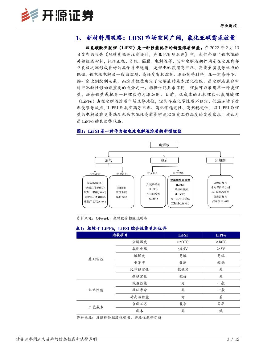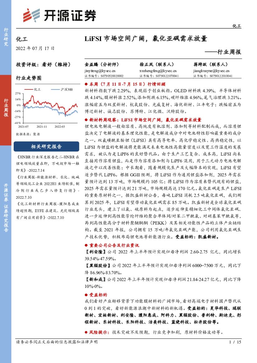 开源证券:化工行业周报:LiFSI市场空间广阔,氯化亚砜需求放量.pdf