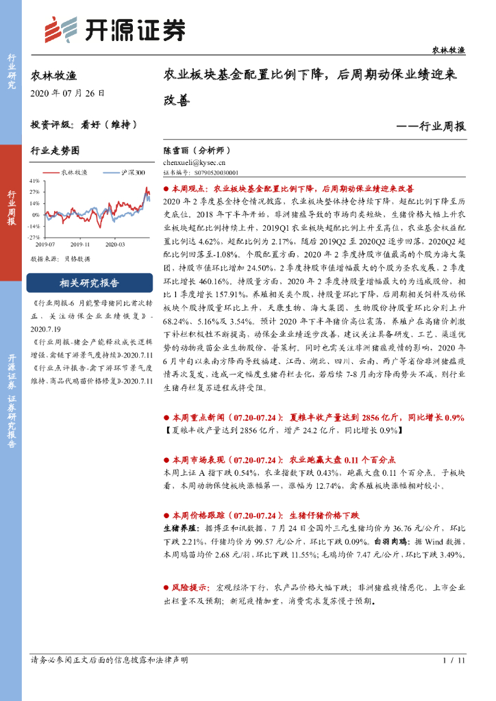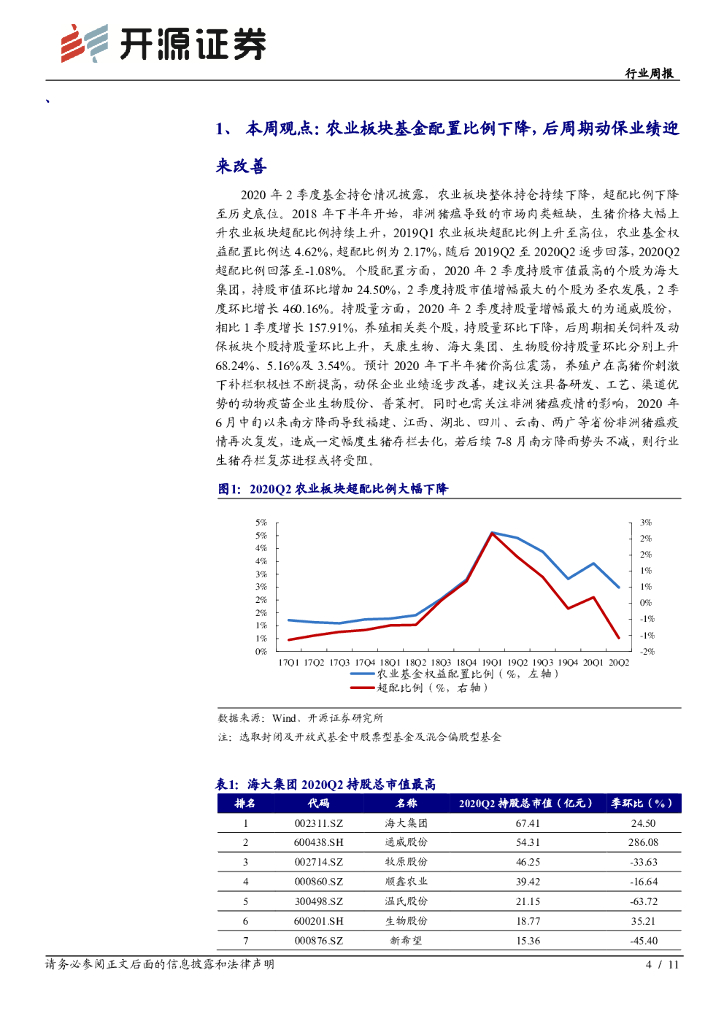 开源证券:农林牧渔行业周报:农业板块基金配置比例下降,后周期动保业绩迎来改善.pdf