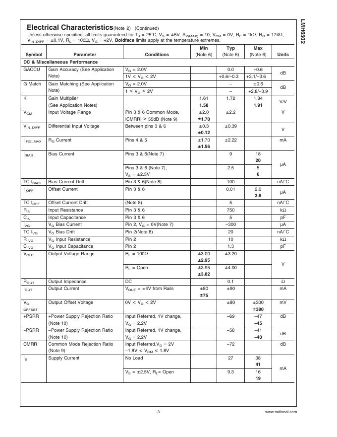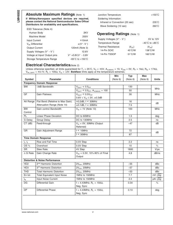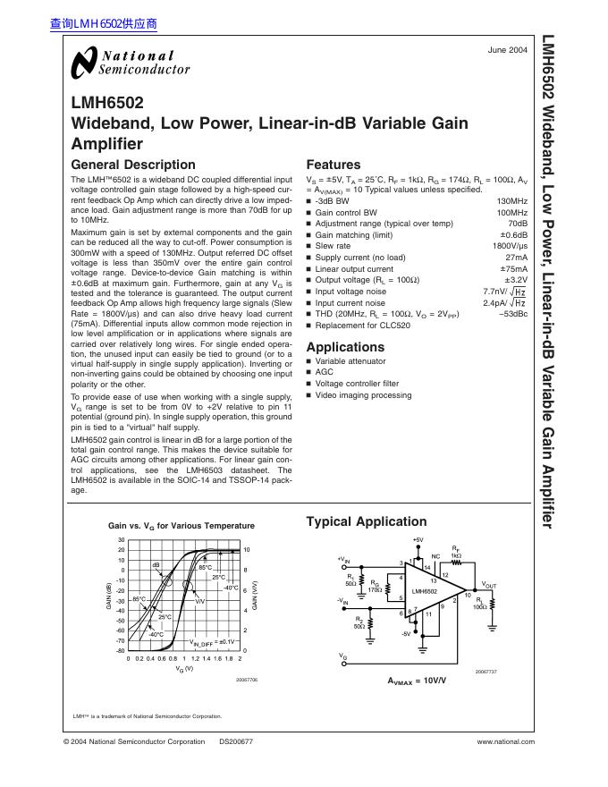 National Semiconductor LMH6502 Wideband, Low Power, Linear-in-dB Variable Gain Amplifier 数据手册.pdf