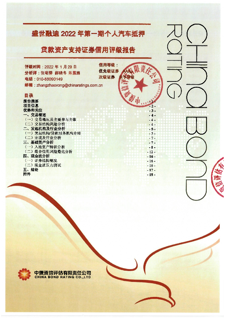 中债资信:盛世融迪2022年第一期个人汽车抵押贷款资产支持证券中债资信评级报告.pdf