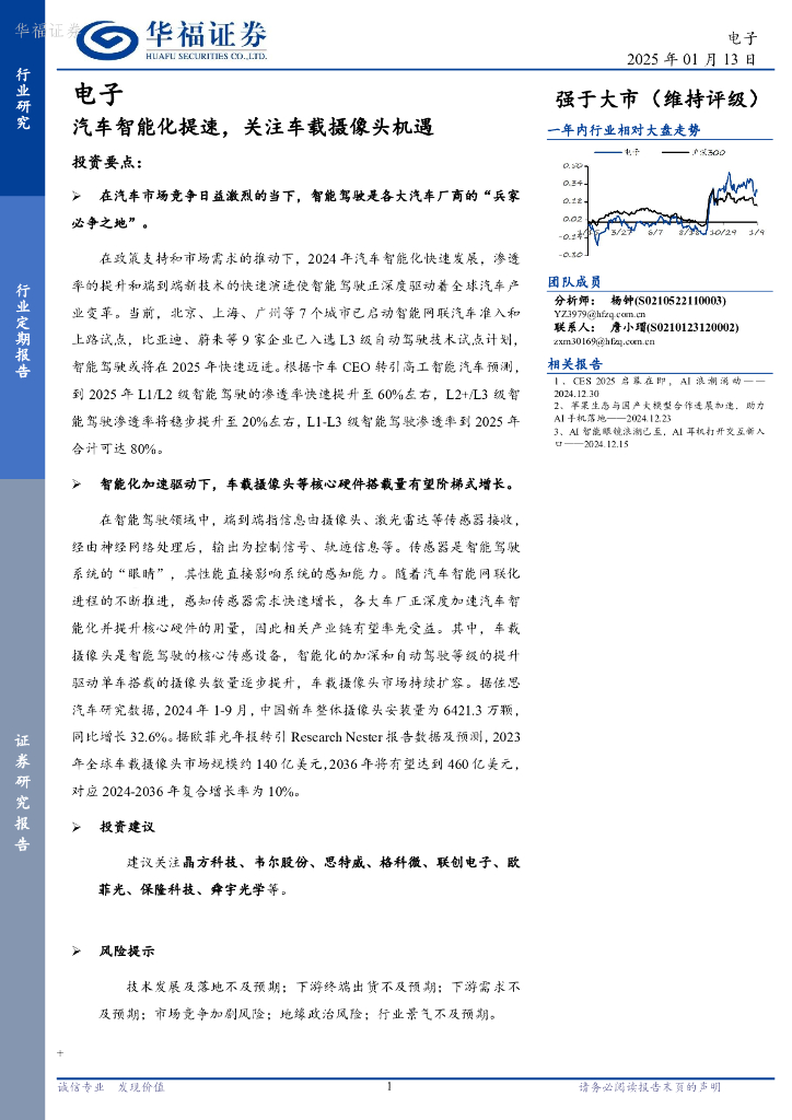华福证券:电子:汽车智能化提速,关注车载摄像头机遇.pdf