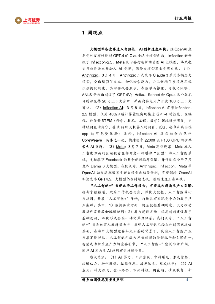 上海证券:计算机行业周报:大模型竞争白热化,政府报告首提“人工智能+”.pdf