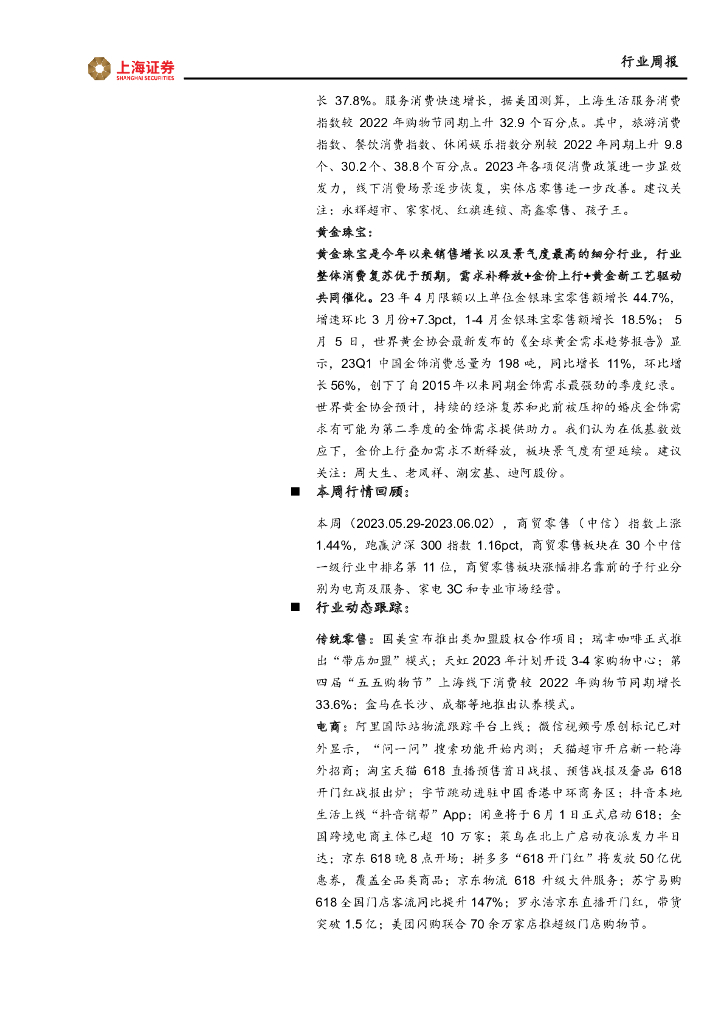 上海证券:商贸零售行业周报:“618”初期销售较乐观,关注大促后续走势.pdf