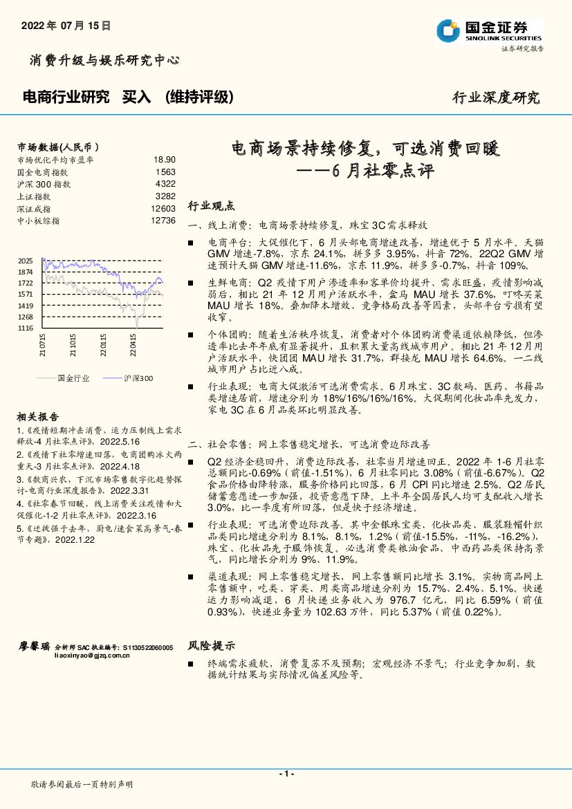 国金证券:电商行业研究:6月社零点评-电商场景持续修复,可选消费回暖.pdf