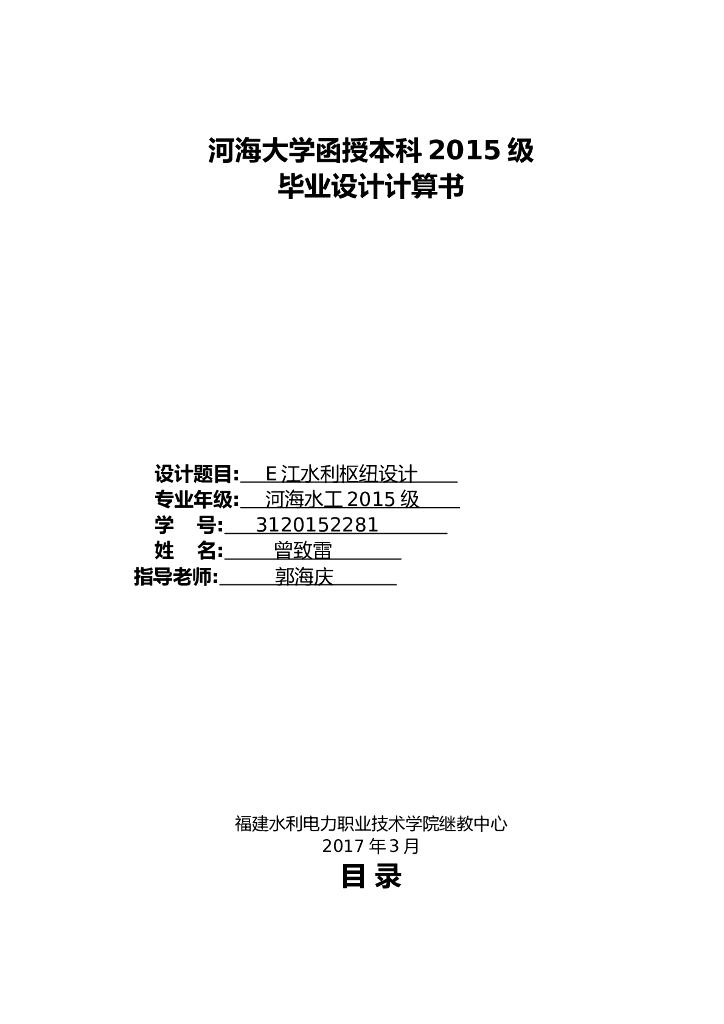水利枢纽工程毕业设计计算书word版(共31页).doc