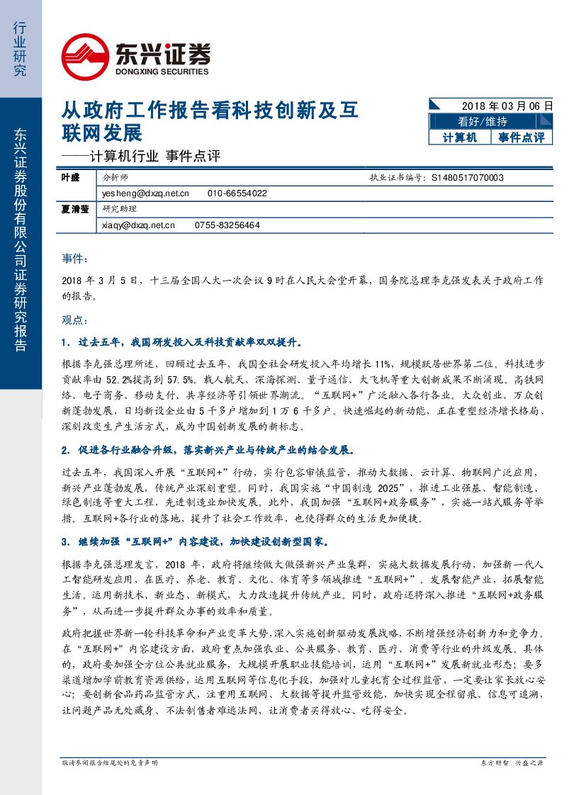 东兴证券:计算机行业事件点评:从政府工作报告看科技创新及互联网发展.pdf