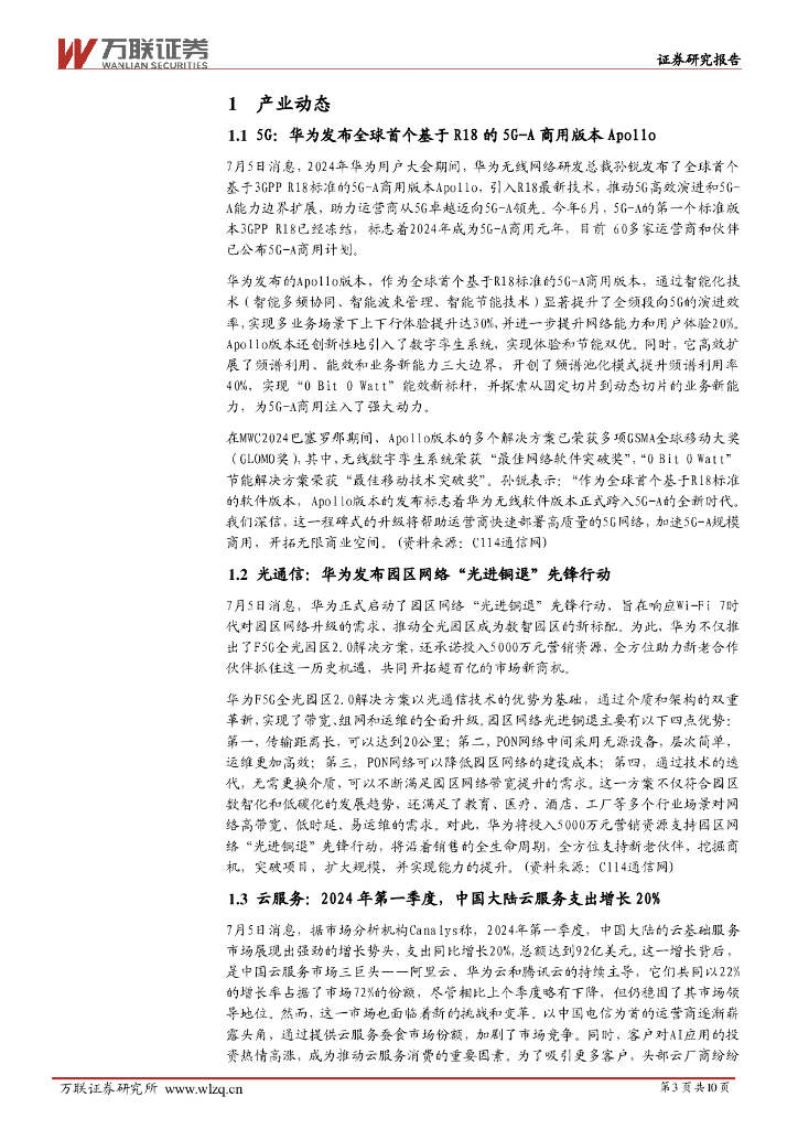 万联证券:通信行业周观点:2024Q1中国大陆云服务支出增长20%.pdf