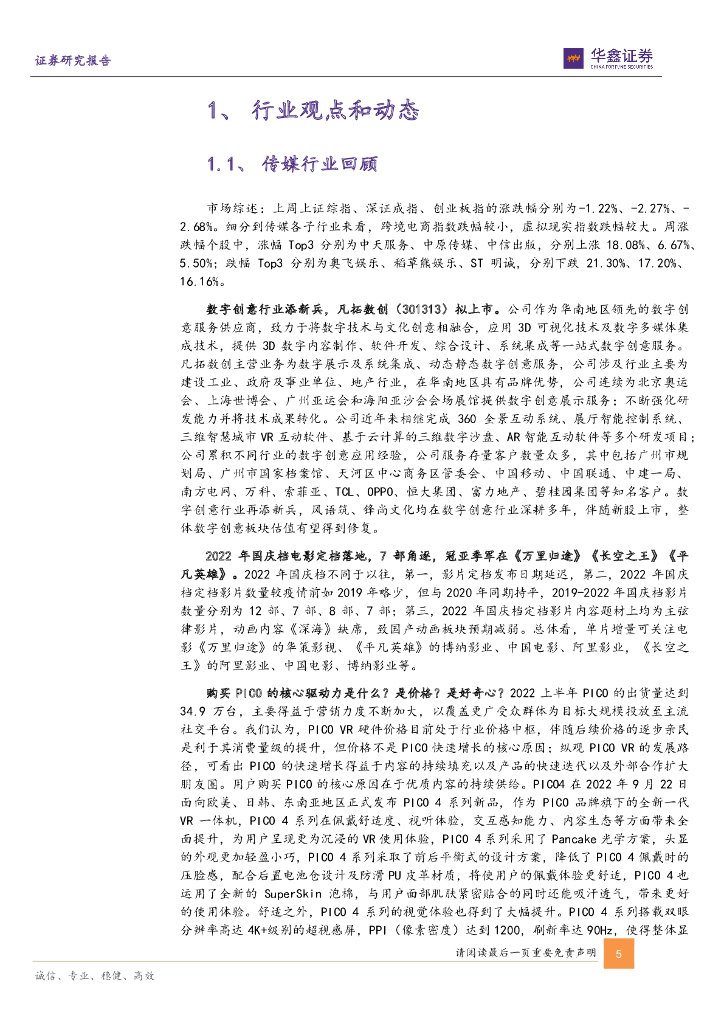 华鑫证券:传媒新消费行业周报:迎PICO中国发布会凡拓数创拟上市数字创意行业添新兵.pdf