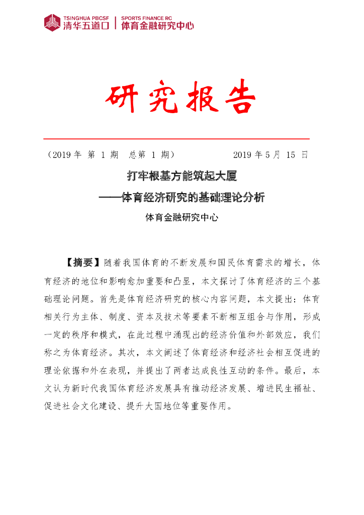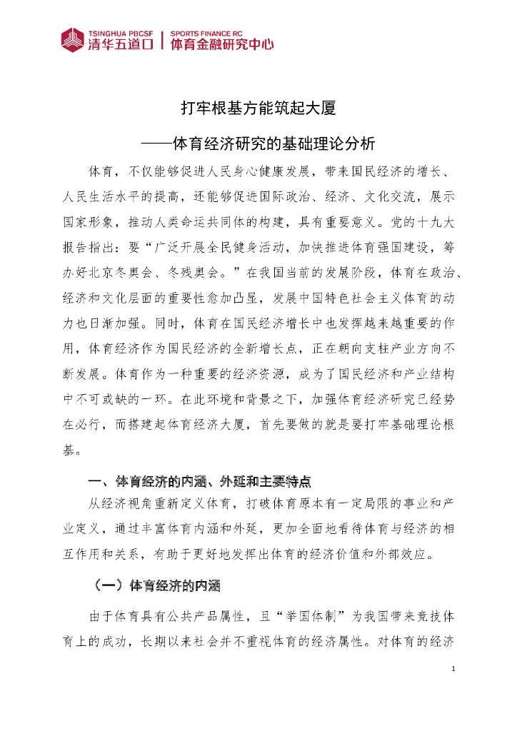 清华五道口&体育金融研究中心:打牢根基方能筑起大厦——体育经济研究的基础理论分析研究报告.pdf