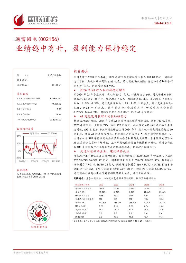 国联证券:通富微电(002156)-业绩稳中有升,盈利能力保持稳定.pdf