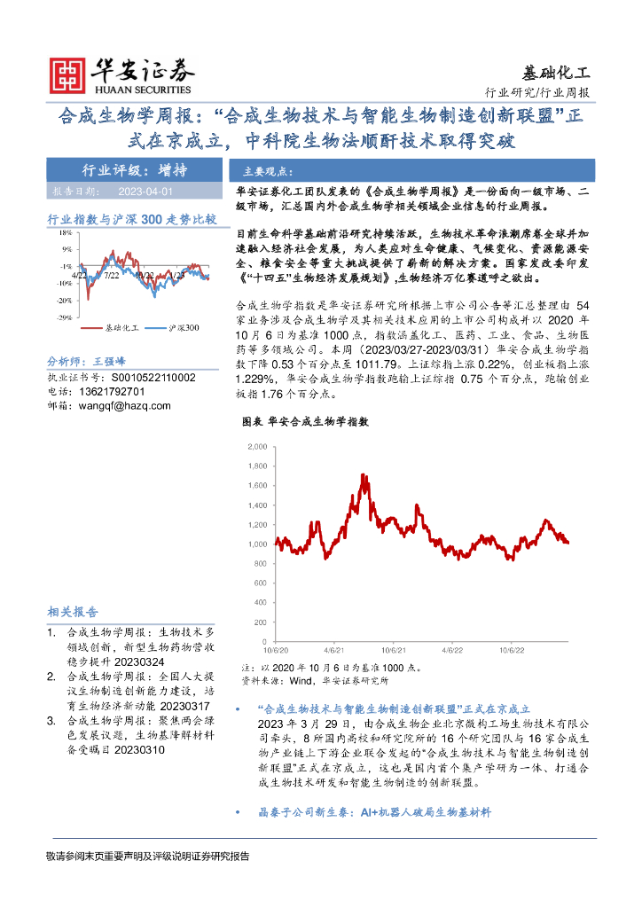 华安证券:合成生物学周报:“合成生物技术与智能生物制造创新联盟”正式在京成立,中科院生物法顺酐技术取得突破.pdf