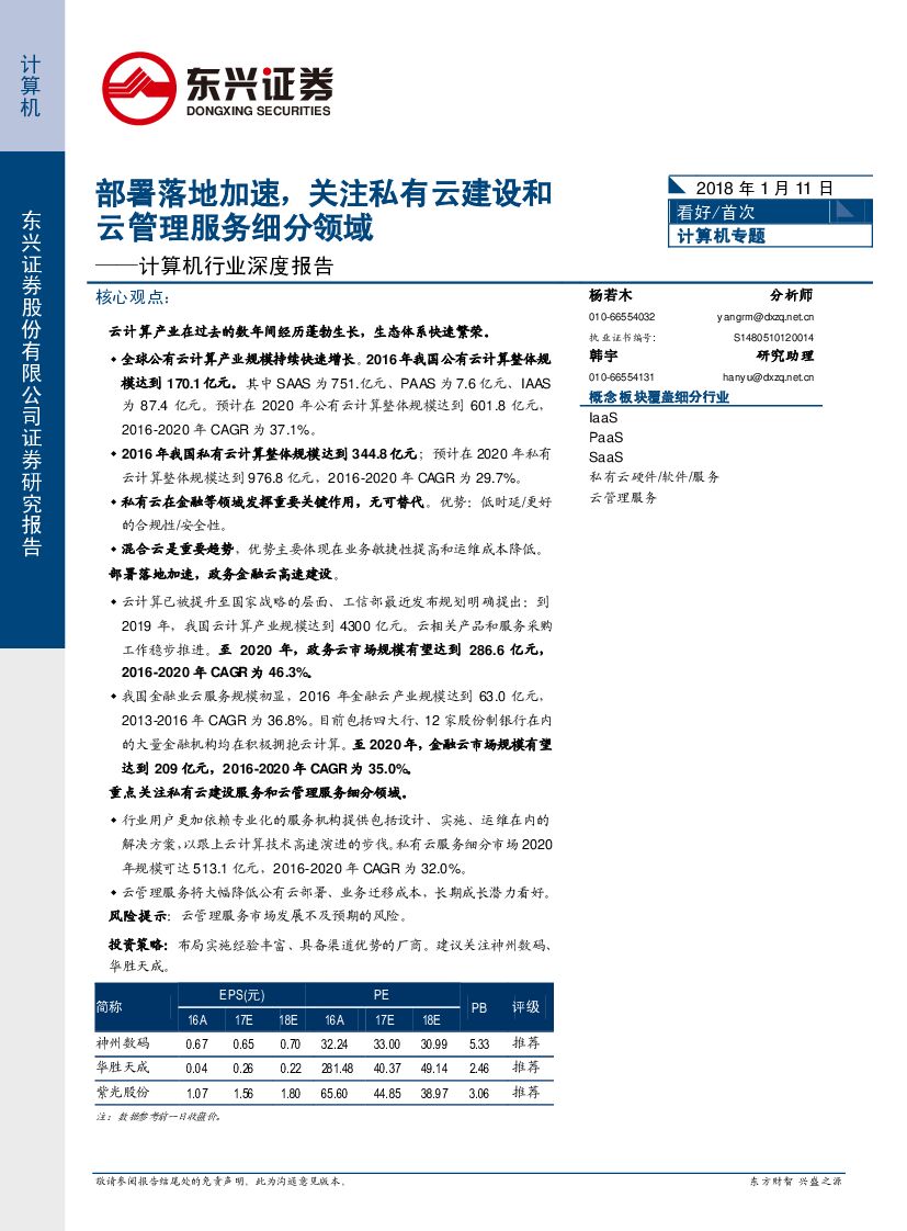东兴证券:计算机行业深度报告:部署落地加速,关注私有云建设和云管理服务细分领域.pdf